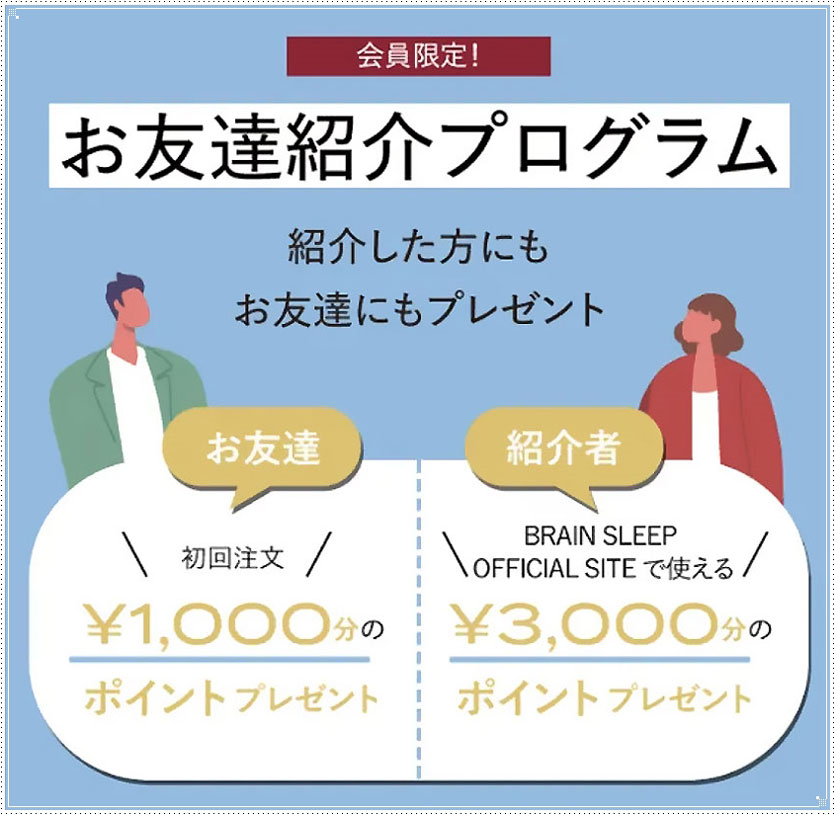 ブレインスリープの商品をご購入予定の友達がいれば、「お友達紹介プログラム」も活用できます。