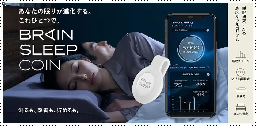 ブレインスリープが提供する「ブレインスリープ コイン」では、睡眠データや睡眠習慣に応じてスリープコインが貯まります。